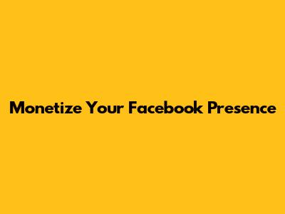 Monetize Your Facebook Presence