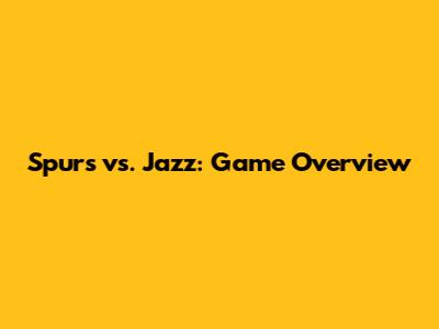 Spurs vs. Jazz: Game Overview